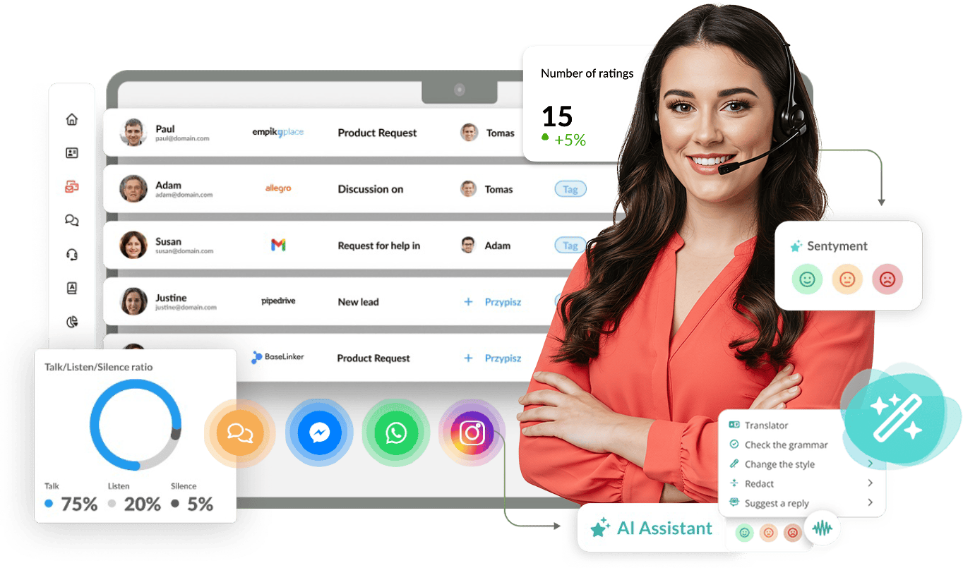 Gromadź i porządkuj wszystkie informacje o klientach wraz z pełną historią komunikacji z każdego kanału w jednym miejscu. Zapewnij spersonalizowaną komunikację i skuteczną obsługę z pomocą asystentów AI.